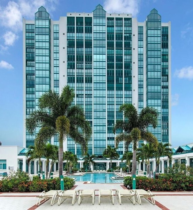 Grosvenor–Take a step into the Grosvenor to be greeted by a massive indoor atrium. Plans are in the works for a lobby and atrium renovation which will bring a modern, coastal aesthetic to the building. Due to the unique shape of the building, the majority of the units do not offer direct Gulf of Mexico views in comparison to other high-rises on our list. Amenities include a social room, fitness center, pool, 24-hour security, two guest suites, and more.